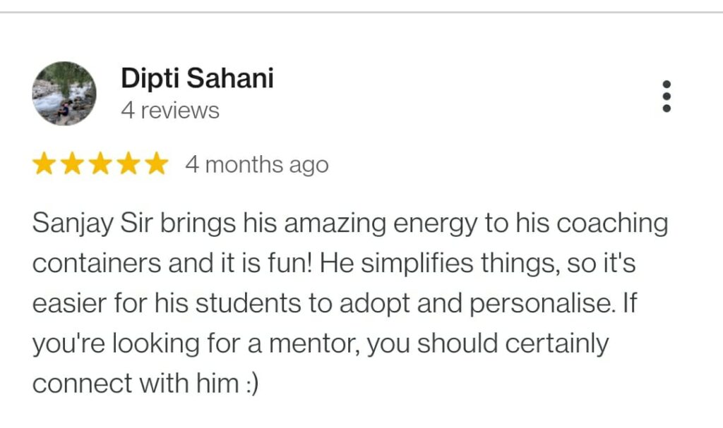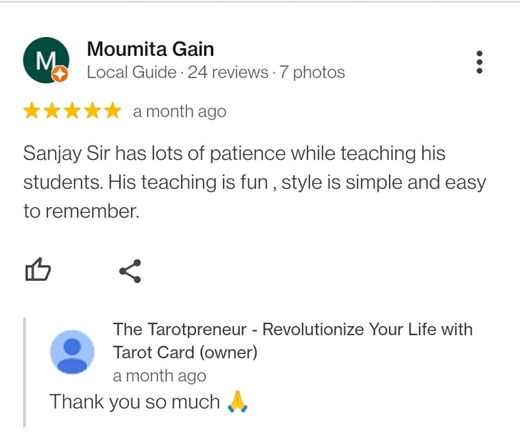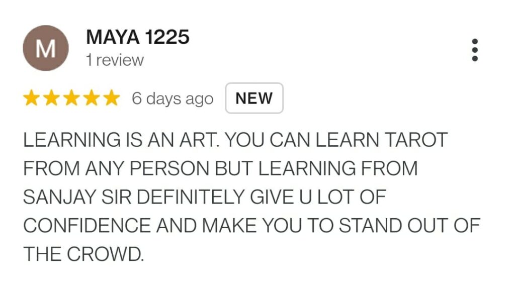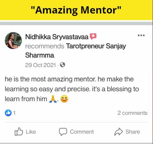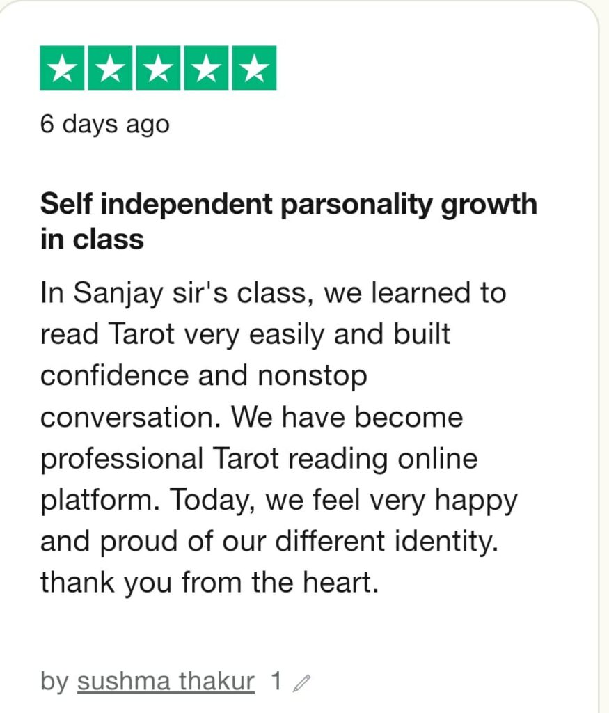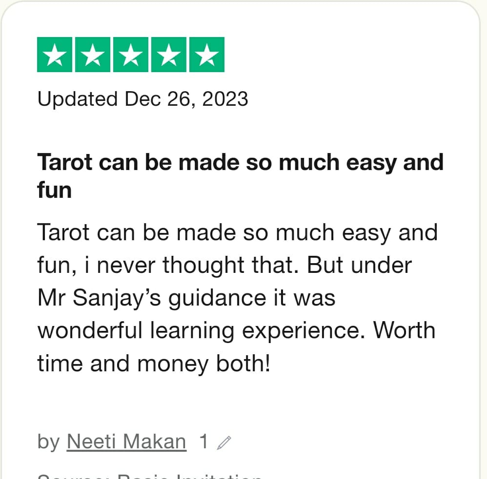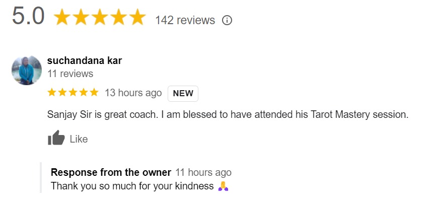 Sanjay's expertise extends beyond Tarot coaching. He is a "Certified NLP Coach, Certified Professional Coach, Certified DMIT Expert, Certified Mobile Numerologist, and has received personal coaching on the renowned 7 Habits from Dr. Stephen Covey and marketing coaching from Mr. Gopal Krishnan, Founder of Binge Marketing.