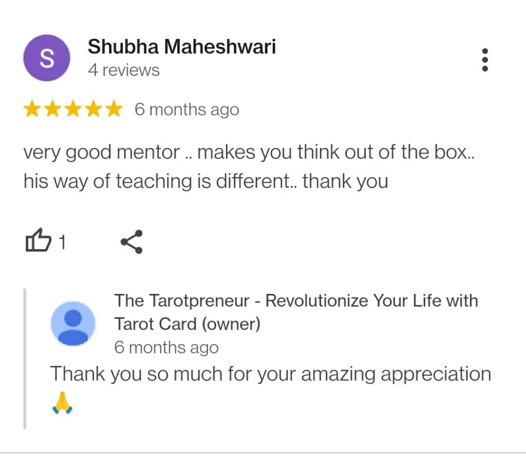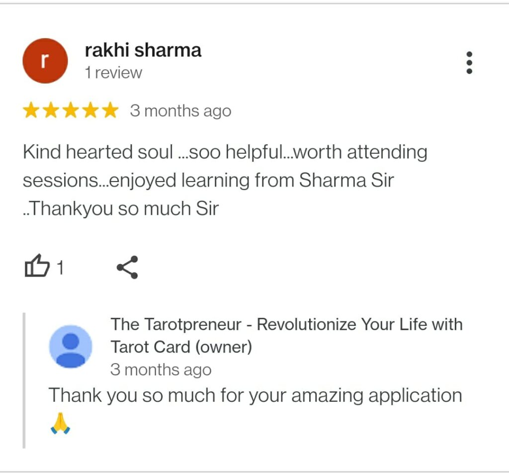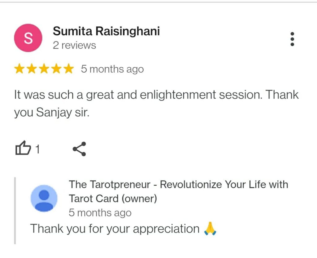 Meet Sanjay Sharma, Founder & CEO of The Tarotpreneur, Live10XLife and Academy for Tarot Coaches, India's Best Tarot Coach, with over 30 years of professional sales experience in working with corporates and a decade of expertise in Tarot reading and coaching. Sanjay has positively impacted the lives of thousands of individuals from India, USA, Malaysia, France, and beyond, guiding them towards remarkable transformations.